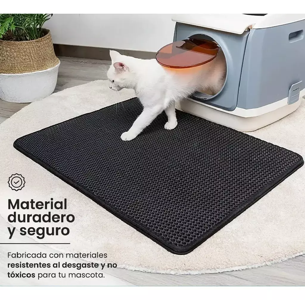 La alfombra para gatos es la solución ideal para evitar que los residuos del arenero terminen por todo tu piso. Su diseño de doble capa tipo panal atrapa eficazmente la arena que queda en las patas de tu gato al salir del arenero. ¡Más limpieza, menos esfuerzo!