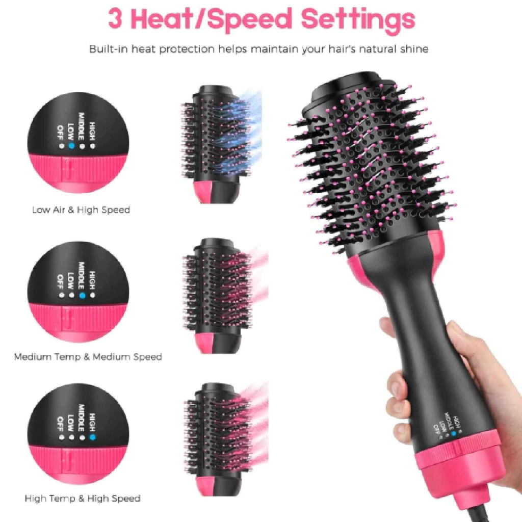 Cepillo Secador De Pelo 3 En 1 Transforma tu rutina de belleza con el Cepillo Secador De Pelo 3 En 1, diseñado para ofrecerte resultados profesionales desde la comodidad de tu hogar. Con una potencia de 1000W y un control de temperatura ajustable, podrás personalizar el calor según tus necesidades.