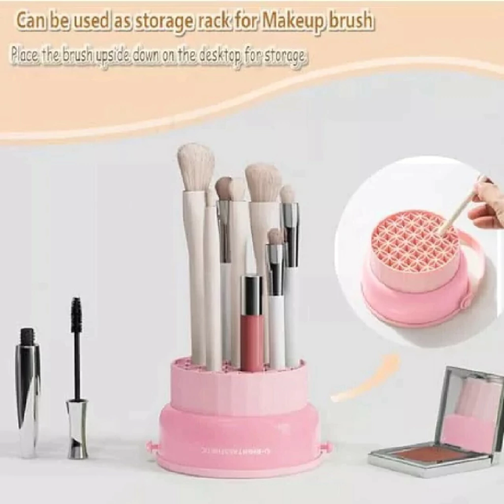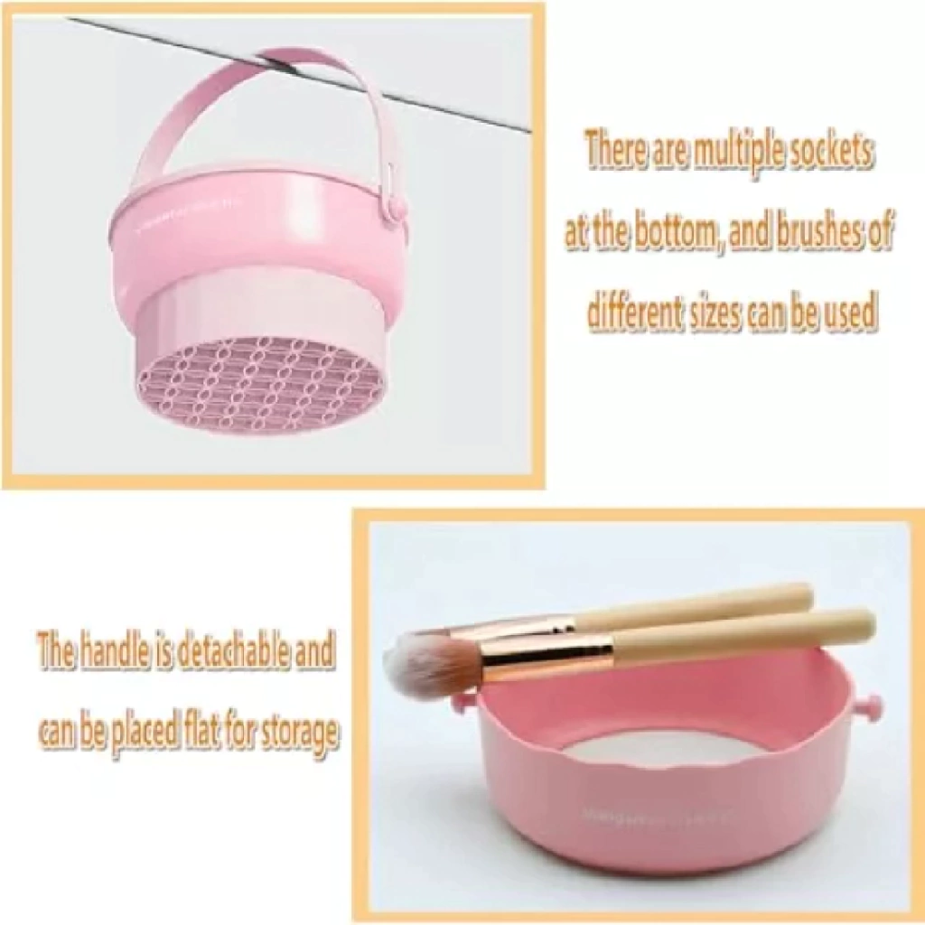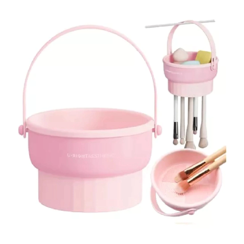 Makeup Brush Cleaner Mat 3 In 1 Silicone Makeup Brush Cleaner Bowl With Brush Drying Holder Cosmetic Brushes Cleaning Tool Organizer For Storage & Air Dry(pink)