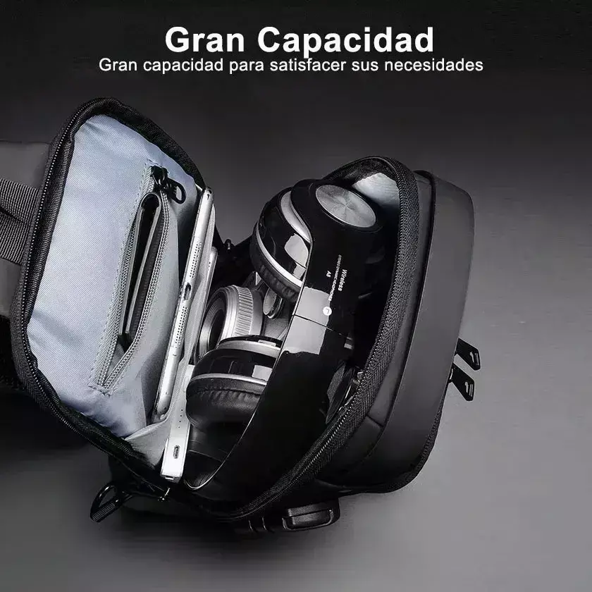 Mochila Pechera Cruzada Impermeable con Puerto USB y Sistema Antirrobo
